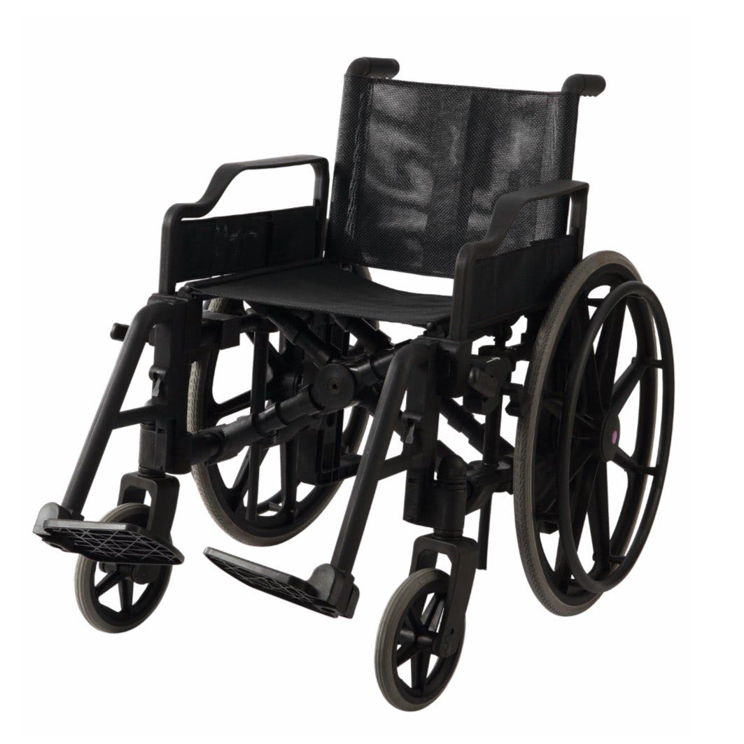 Ce fauteuil roulant zéro métal est réalisé uniquement en matière plastique, ce qui lui permet d’être utilisé en milieu aquatique spécifique.
