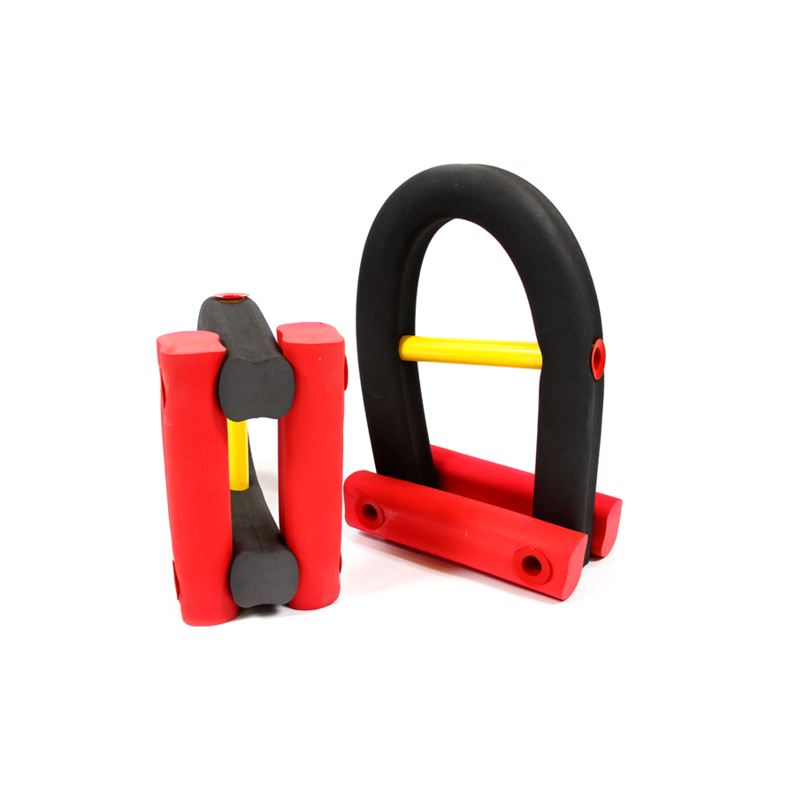 Cette paire d’haltères est composée de mousse et d’un bâton