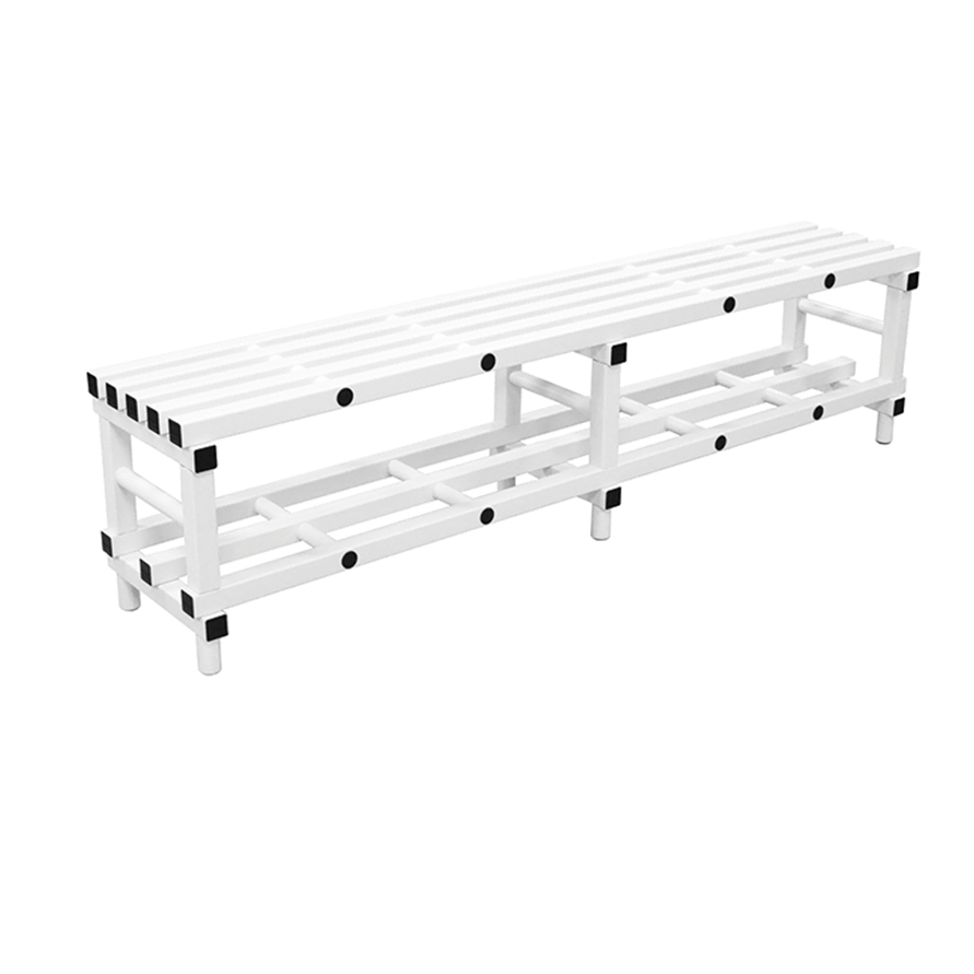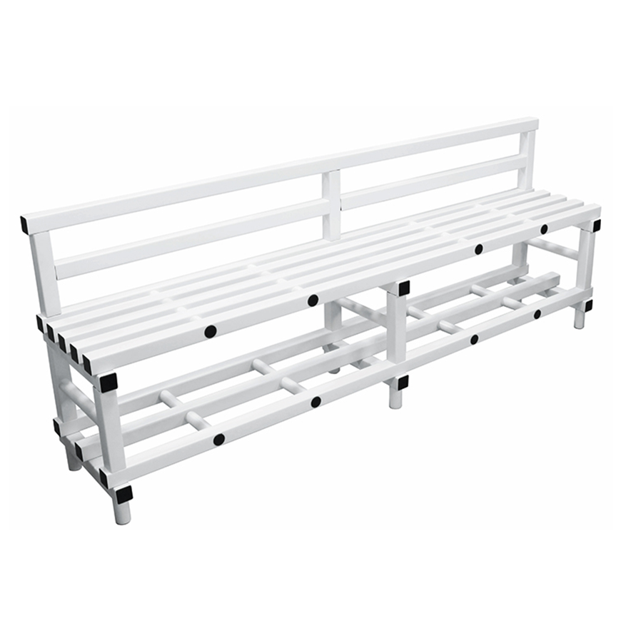 Banc de vestiaire double avec assise, repose chaussures, dossier et