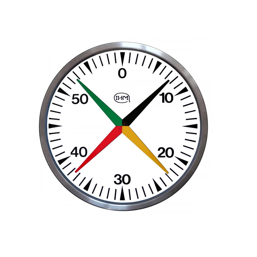 Aluminium brosséCompte-secondes intérieur mural équipé de 4 aiguilles couleurs. Traité